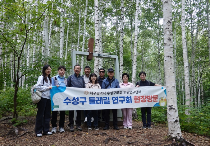 [코리아 이슈저널=김태훈 기자] 대구 수성구의회 의원연구단체인 ‘수성구 둘레길 연구회’는 지난 25일 경상북도 영양군 수비면 자작나무 숲길을 방문해 생태형 둘레길 개발과 지역경제 활성화 방안을 모색했다.