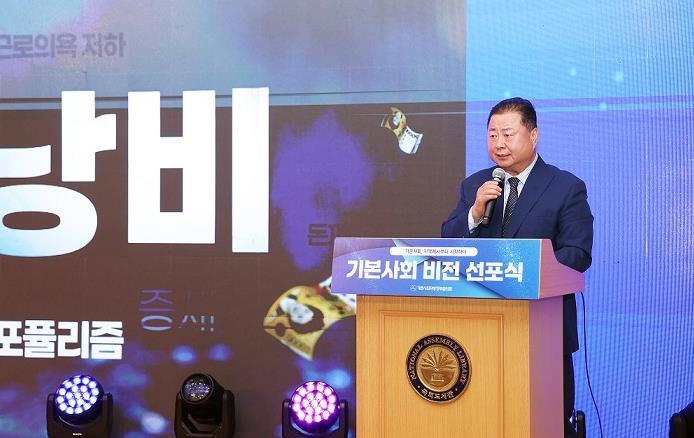 [코리아 이슈저널=홍춘표 기자] 파주시가 회장 도시를 맡고 있는 기본사회지방정부협의회는 지난 8일 국회도서관 대강당에서 ‘기본사회 비전 선포식’을 열고, ▲누구나 공정한 기회를 갖는 사회 ▲차별과 소외, 불평등과 사각지대 없는 사회 ▲지역경제가 되살아나는 사회 ▲미래세대와 공존하는 지속가능한 사회라는 비전을 선포, 기본사회 모델을 전국에 확산시킬 것을 선언했다.