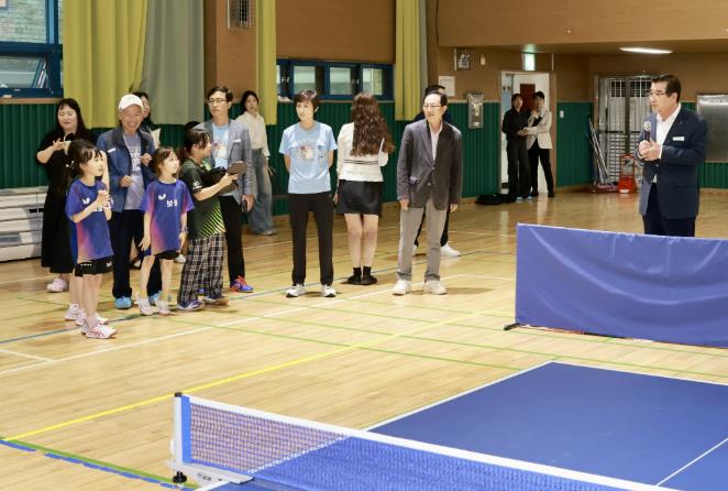 [코리아 이슈저널=김윤영 기자] 보령시는 지난 29일 명천초등학교에서 한국마사회 탁구단 현정화 감독(前 국가대표 선수, 올림픽 금메달리스트)을 초청해 보령시 탁구 꿈나무들과 특별한 만남을 가졌다고 밝혔다.