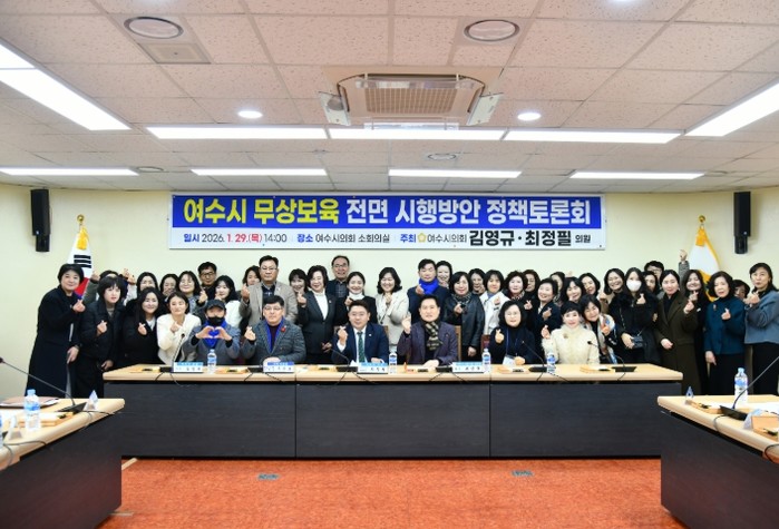[코리아 이슈저널=홍춘표 기자] 여수시의회는 29일 오후 2시, 여수시의회 소회의실에서 정부의 단계적 무상보육 확대 정책에 발맞춰 전연령 무상보육 실현을 위한 정책 논의를 위한 '여수시 무상보육 전면 시행방안 정책토론회'를 개최했다.