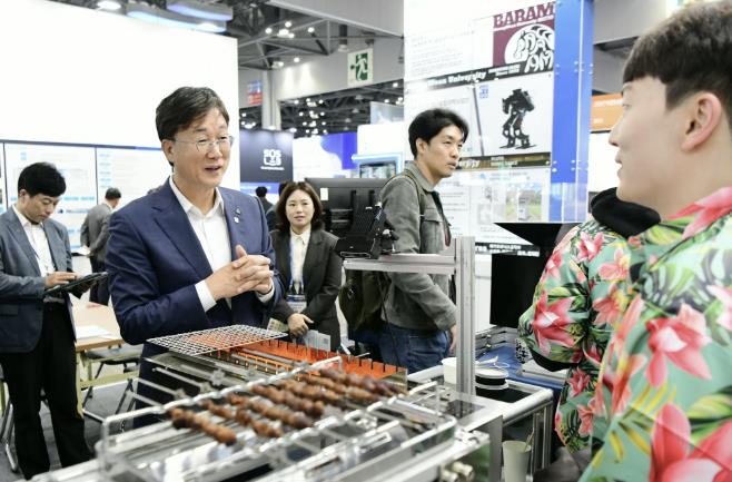 | ▲ 이민근 안산시장이 지난해 10월 안산사이언스밸리 투자설명회 및 지산학연 간담회에서 한 청년 사업가와 대화를 나누고 있는 모습 |