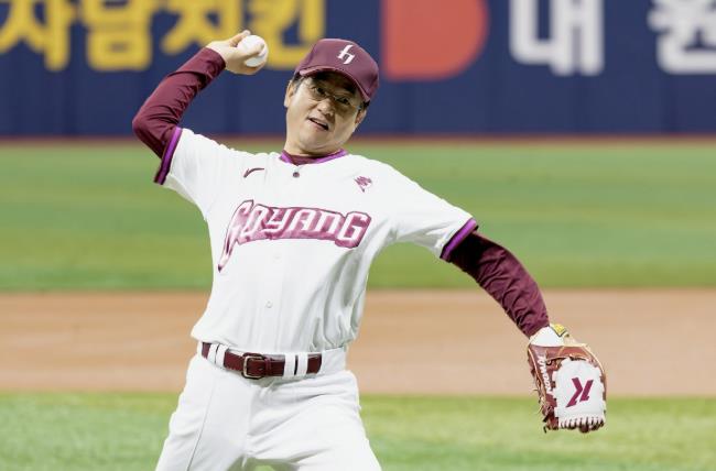 이동환 고양시장, 고양 히어로즈 경기 시구…야구팬들과 소통