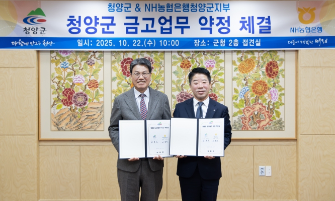 [코리아 이슈저널=홍종수 기자] 청양군은 지난 22일 군청 접견실에서 NH농협은행 청양군지부와 차기 금고 업무 취급을 위한 약정식을 갖고 약정을 체결했다.