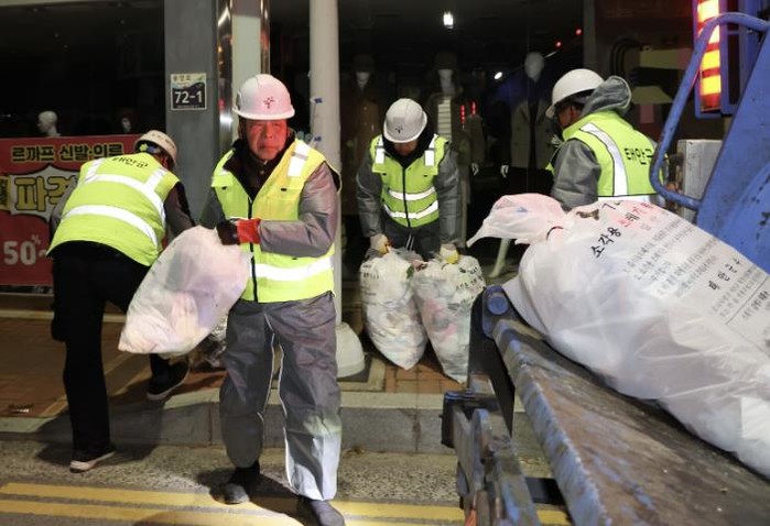 8일 새벽, 태안읍 남문공영주차장 집결해 시장 및 중앙로 쓰레기 수거