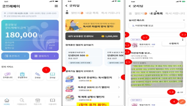 ‘굿리딩(GoodeReading)’은 도서관과 지역화폐를 연계한 참여형 독서 플랫폼으로, 주민들이 굿뜨래페이 앱 내에서 독서 활동을 기록하고 공유하며, 챌린지 방식으로 보상을 받을 수 있는 시스템이다.