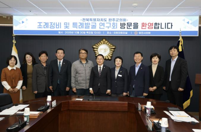[코리아 이슈저널=홍춘표 기자] 당진시의회는 10월 30일 완주군의회 의원 연구단체인‘조례 정비 및 특례 발굴 연구회’와 간담회를 갖고, 입법영향평가 제도 운영 경험과 노하우를 공유하는 시간을 가졌다.