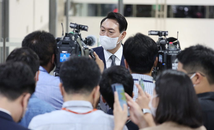 | ▲ 윤석열 대통령이 17일 서울 용산 대통령실청사로 출근하며 기자들의 질문에 답하고 있다. 2022.6.17 |
