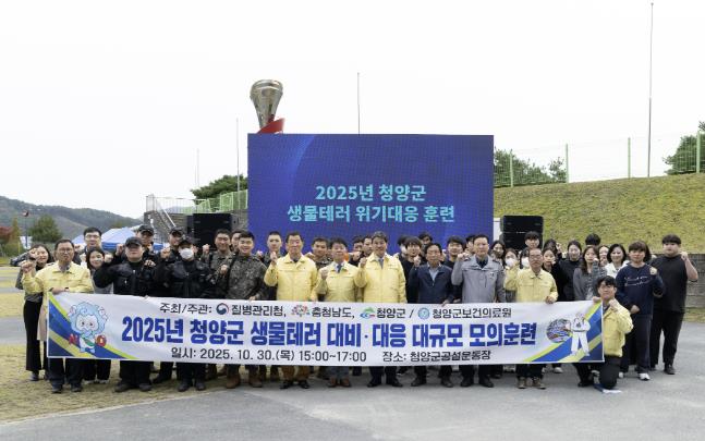 [코리아 이슈저널=홍종수 기자] 청양군보건의료원은 지난 30일 청양공설운동장에서 ‘2025년 청양군 생물테러 대비 대규모 훈련’을 실시했다.