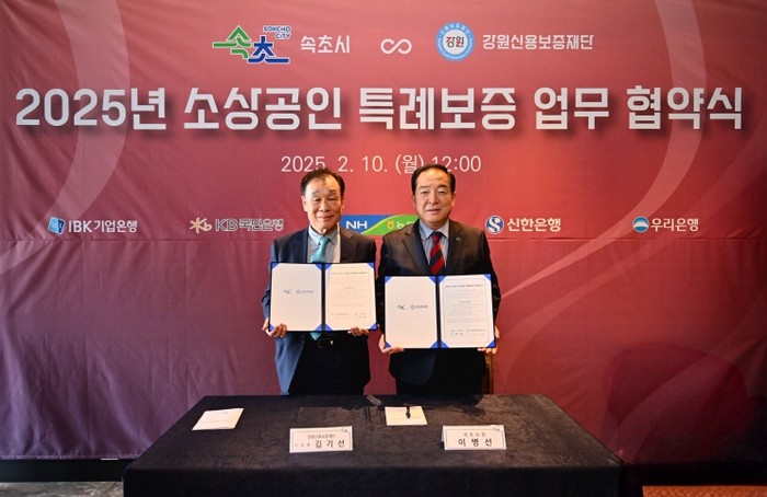 ‘소상공인 특례보증 사업’은 담보력이 부족한 소상공인이 금융기관에서 저금리 대출을 받을 수 있도록 속초시와 강원신용보증재단이 협약을 통해 보증을 제공하는 제도다.