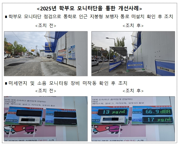 모니터단은 교육환경평가 승인 이후 사업시행자가 제시한 분야별 예방 및 저감조치가 적절히 이루어지고 있는지를 총 10회에 걸쳐 현장에서 실시간으로 확인하고, 그 결과를 시도교육청에 전달한다. 시도교육청은 이를 바탕으로 예방 및 저감조치 이행률이 저조한 사업장에 대한 현장 점검을 실시하는 등 안전한 교육환경 조성을 위해 적극 대응할 계획이다.