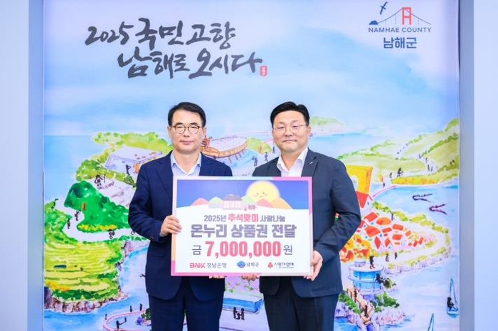 [코리아 이슈저널=김태훈 기자] 남해군은 지난 30일 BNK경남은행 남해지점이 추석 명절을 앞두고 700만원 상당의 온누리상품권을 기탁했다고 밝혔다.
