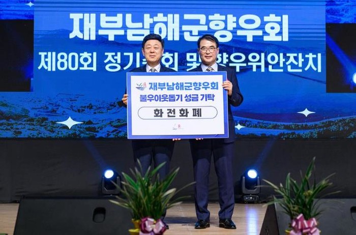 [코리아 이슈저널=김태훈 기자] 남해군은 재부남해군향우회가 추석 명절을 앞두고 고향사랑 마음을 담아 500만원 상당의 화전화폐를 기탁했다고 밝혔다.