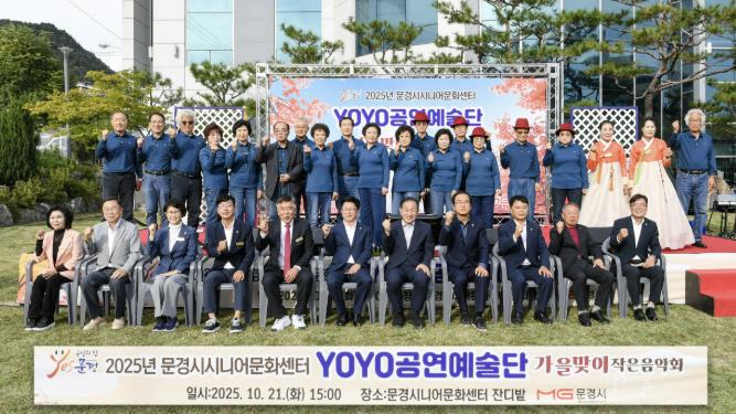 [코리아 이슈저널=김태훈 기자] 문경시 시니어문화센터는 지난 21일 300여 명의 관람객이 찾은 가운데 시니어문화센터 앞 광장에서 23명의 어르신들이 취미 활동으로 갈고닦은 실력을 뽐내는 ‘2025년 문경시 시니어문화센터 YOYO공연예술단 가을맞이 작은 음악회’를 열었다.