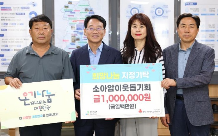 기탁식에 참석한 강진원 강진군수는 “소아암이웃돕기회의 정성과 따뜻한 마음을 필요한 곳에 소중히 사용하겠다”고 말했다.