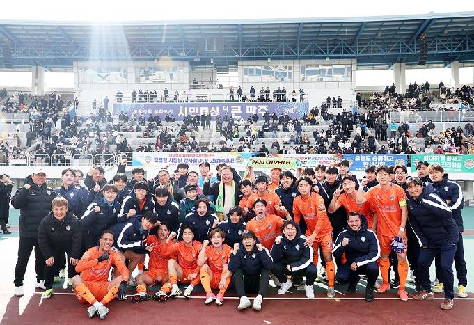 김경일 파주시장은 “이번 1차 승인은 단순한 축구단의 승격을 넘어, 파주시 도시브랜드와 지역 경기·문화 발전의 중요한 전환점”이라며 “총회 최종 승인까지 모든 역량을 집중하겠다”라고 밝혔다.