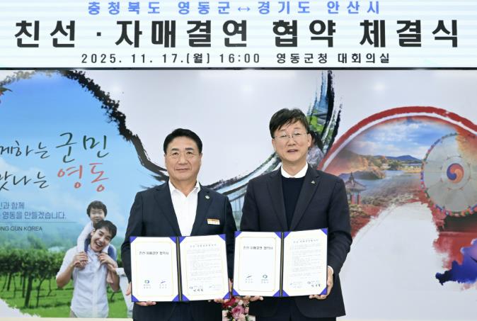 [코리아 이슈저널=홍춘표 기자] 안산시는 지난 17일 영동군청에서 충청북도 영동군과 친선 결연 협약식을 체결하고 상호 협력을 약속했다고 18일 밝혔다.