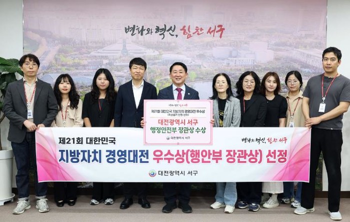 [코리아 이슈저널=홍종수 기자] 대전 서구는 제21회 대한민국 지방자치 경영대전에서 지방 물가 안정 분야 우수상(행정안전부 장관 기관 표창)을 받았다고 13일 전했다.