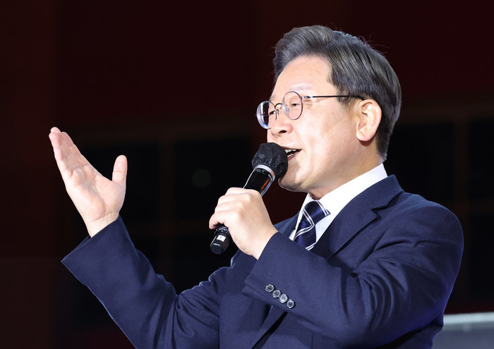 | ▲ 더불어민주당 이재명 대선후보가 27일 울산시 롯데백화점 울산점 광장에서 열린 '행복도시 울산, 탄소중립·그린에너지 신산업 수도로' 울산 유세에서 지지를 호소하고 있다. 2022.2.27 |