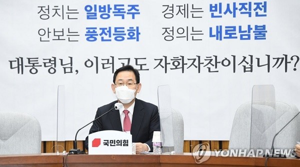 [열린의정뉴스 = 최제구 기자] 주호영 국민의힘 원내대표는 20일 원내대책회의에서 더불어민주당이 고위공직자범죄수사처(공수처) 설치법을 개정해 야당의 거부권(비토권)을 없애려는 움직임에 대해 "지금 공수처법은 야당 의원 (의견이) 한 줌도 들어가 있지 않다. 자기들이 낸 법안을 통째로 절차도 맞지 않는 패스트트랙(신속처리절차)으로 통과시킨 것"이라고 전하며 "자기들이 만들어 준 거부권 아니냐"고 주장했다.