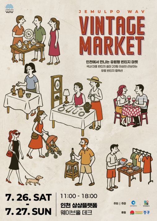 [코리아 이슈저널=김윤영 기자] 인천광역시와 인천관광공사는 7월 26~27일 상상플랫폼 웨이브홀(실내)에서 인천 대표 로컬 브랜드와 국내 대표 빈티지 셀러 총 90팀이 참여하는‘2025년 제2회 제물포 웨이브 마켓’을 개최한다고 밝혔다.