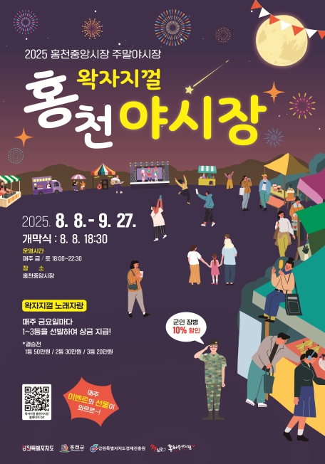 오는 8월 8일 개장식을 시작으로 9월 27일까지 매주 금·토요일 홍천 중앙시장 동문 앞 거리에서 2025 홍천중앙시장 주말야시장을 왁자지껄하게 연다.