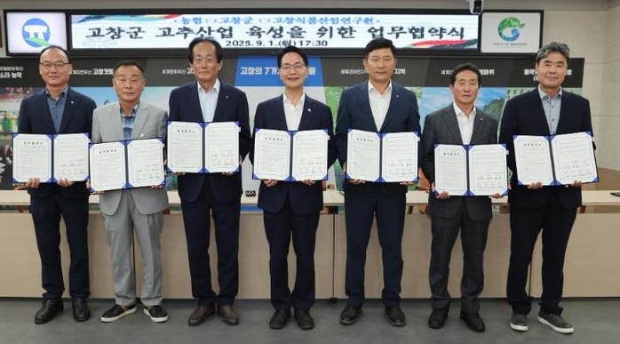 [코리아 이슈저널=김종오 기자] 고창군이 지난 1일 오후 5곳의 지역농협(고창농협, 선운산농협, 대성농협, 해리농협, 흥덕농협), 고창식품산업연구원과 손잡고, 고추산업의 경쟁력 강화와 지속가능한 발전을 위한 업무협약을 체결했다.