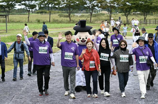 | ▲ 이민근 안산시장(왼쪽 두번째)이 대부포도축제 둘째 날인 20일 대부해솔길 걷기대회에 참여하고 있다. |