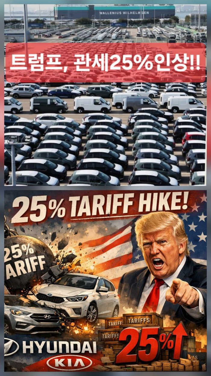도널드 트럼프 미국 대통령이 한국산 제품에 대한 관세를 기존 15%에서 무역합의 이전 수준인 25%로 인상하겠다고 밝히면서 현대차와 기아 주가가 나란히 약세를 보이고 있다.
