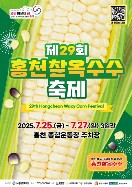 오는 7월 25일부터 27일까지 홍천군 종합운동장 주차장에서 펼쳐지는 제29회 홍천찰옥수수축제는 단순히 맛있는 옥수수를 넘어 홍천의 자부심이 담긴 특별한 축제다.