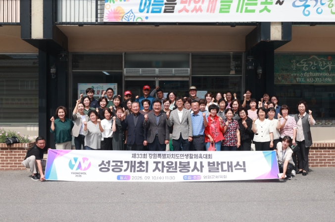 [코리아 이슈저널=최제구 기자] 영월군체육회는 9월 10일 오전 11시 30분, 동강한우 2층에서 최명서 영월군수, 영월군자원봉사센터 및 22개 봉사단체 대표들이 참석한 가운데 제33회 강원특별자치도민생활체육대회 성공개최를 위한 자원봉사 발대식을 개최했다.
