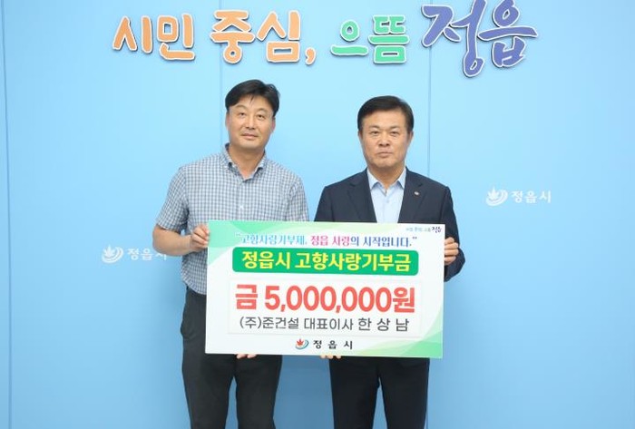 [코리아 이슈저널=김종오 기자] 정읍 기반의 ㈜준건설이 고향사랑기부제 취지에 동참하며 정읍시에 고향사랑기부금 500만원을 전달했다.