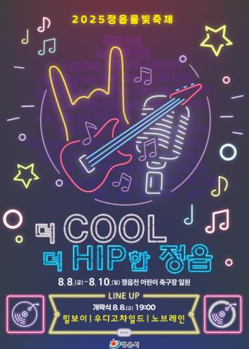 [코리아 이슈저널=김종오 기자] 힙합과 EDM, 그리고 시원한 물놀이가 어우러지는 한여름의 젊음 축제 ‘2025 정읍물빛축제’가 내달 8일부터 10일까지 정읍천 어린이 축구장 일원에서 펼쳐진다.