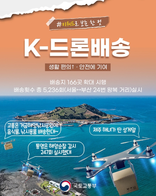 국토교통부, K-드론배송, 배송지 166곳 확대 시행