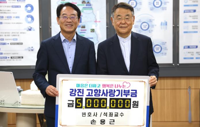 [코리아 이슈저널=김종오 기자] 강진군은 15일 손용근 법무법인(유) 동인 변호사가 고향 강진을 향한 마음을 담아 고향사랑기부금 500만원을 기탁했다고 밝혔다.