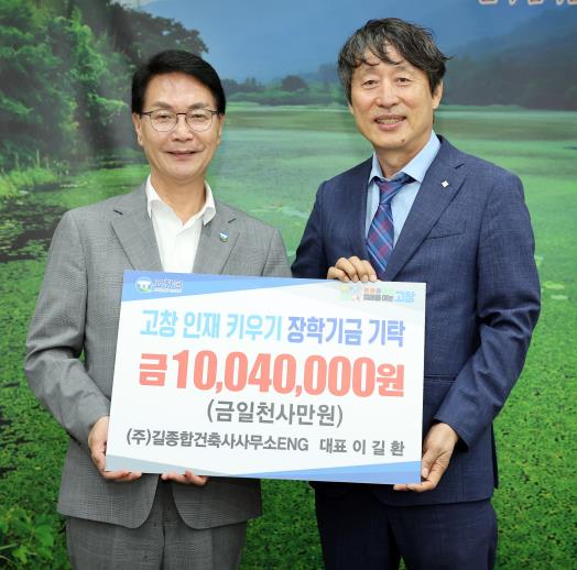 [코리아 이슈저널=김종오 기자] ㈜길종합건축사사무소ENG가 지난 25일 오후 고창군장학재단에 1004만원의 장학금을 기탁하며 고창군 학생들의 학업과 성장을 응원했다.
