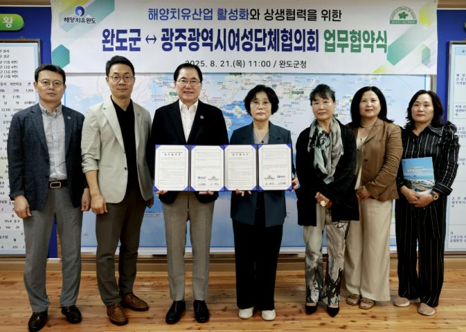[코리아 이슈저널=김종오 기자] 완도군이 광주여성단체협의회와 완도해양치유산업 활성화 및 광주여성단체협의회와의 상생을 위한 업무 협약을 체결했다.
