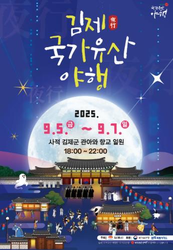 김제시는 오는 9월 5일부터 7일까지 사흘간, 사적 김제군 관아와 향교, 전통시장 일원에서 '2025 김제 국가유산 야행'을 개최한다고 26일 밝혔다.