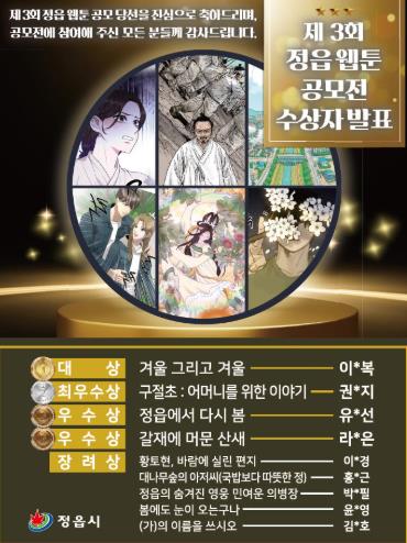 [코리아 이슈저널=김종오 기자] 제3회 정읍 웹툰 공모전이 역대 최다인 61편의 응모작을 기록하며 전국 규모 대회로 자리매김했다.