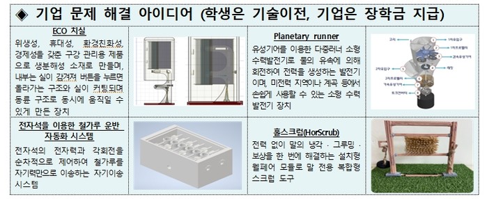 산업현장 과제를 해결한 아이디어 21건은 기업으로 기술이전 되어 활용될 예정으로, 해당 아이디어를 제시한 학생들은 기술 이전료를 장학금으로 지원받게 된다.