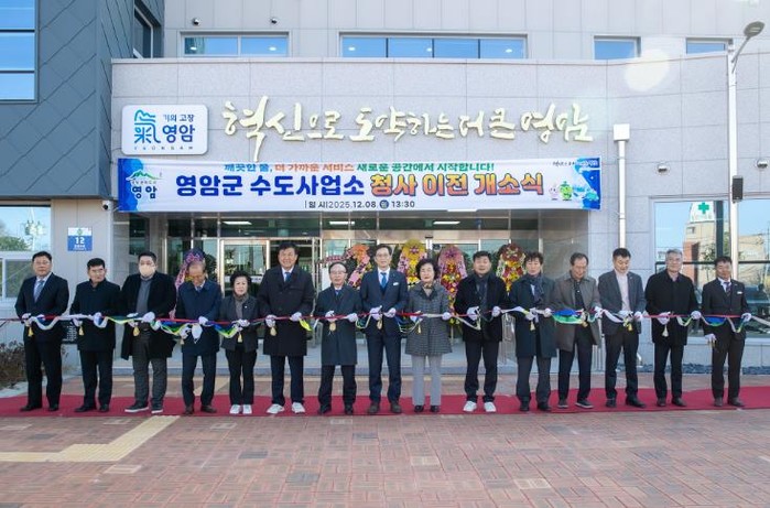 [코리아 이슈저널=김종오 기자] 영암군이 8일 영암읍 천황사로12에서 군민 등 200여 명이 참석한 가운데 영암군수도사업소 청사 이전 개소식을 열고, 운영에 들어갔다.