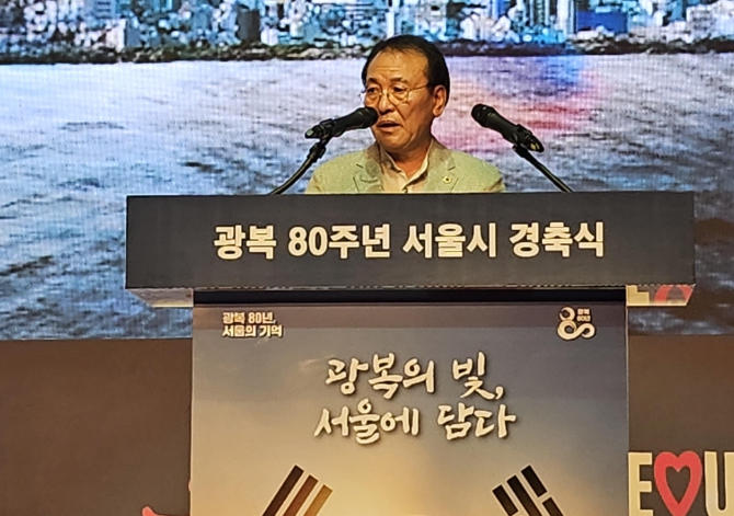 | ▲ '광복 80주년 서울시 경축식'에서 경축사하는 이종환 부의장 |