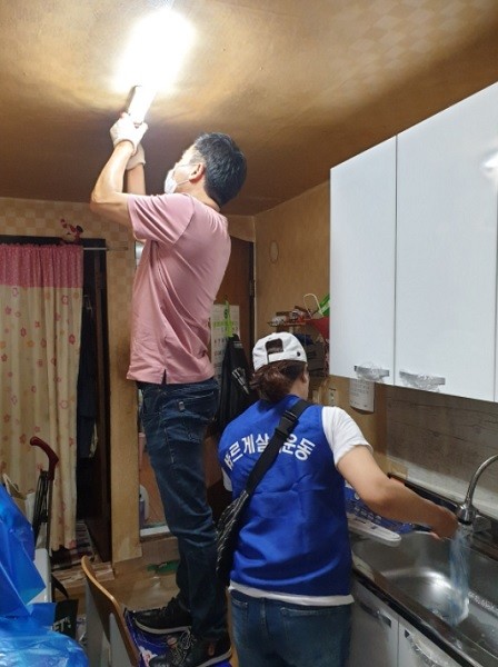 이에 봉사단은 장마철 침수에 대비해 낡은 전기 배선과 LED전등을 교체·정리하여 안전사고를 예방할 수 있도록 했다. 또, 부식되고 지저분한 싱크대를 교체하고 주변을 깨끗하게 정돈해 무더운 여름철에도 위생적인 환경에서 거주할 수 있도록 도왔다.