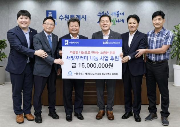 수원·용인시새마을금고 이사장·실무책임자협의회는 현금 900만 원과 600만 원 상당 물품(즉석밥, 국・반찬, 밀키트 등 600만 원 상당)을 기부했다. 수원시사회복지협의회를 통해 추석 연휴 기간 새빛돌봄(식사배달) 서비스 이용자들을 위한 ‘2025년 추석 명절맞이 새빛꾸러미 나눔 사업’에 사용할 예정이다.