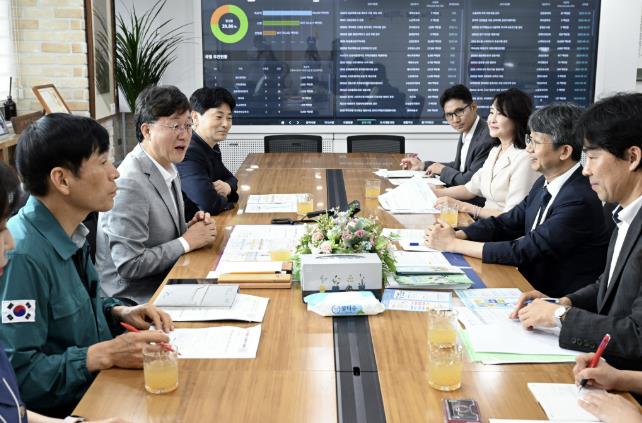 | ▲ 이민근 안산시장(왼쪽 세번 째)이 1일 안산시를 방문한 임승관 질병관리청장(오른쪽 두번 째)과 시민 건강 보호 대책과 폭염 관련 대응 방안을 논의하고 있다. |