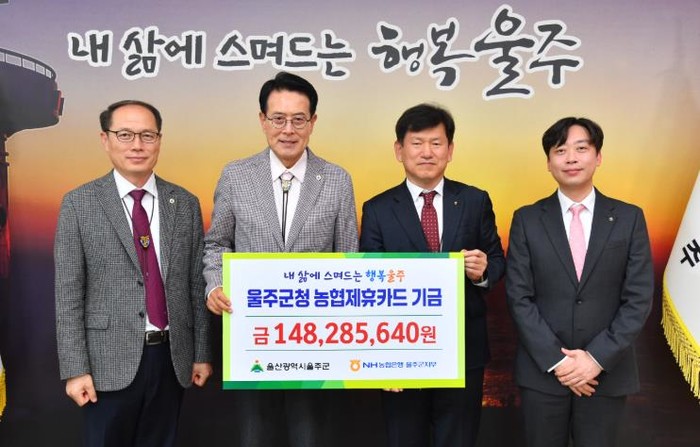 이번에 울주군이 전달받은 적립기금은 총 1억4천828만원으로, 울주군과 NH농협은행의 제휴카드 협약에 따라 적립된 금액이다.