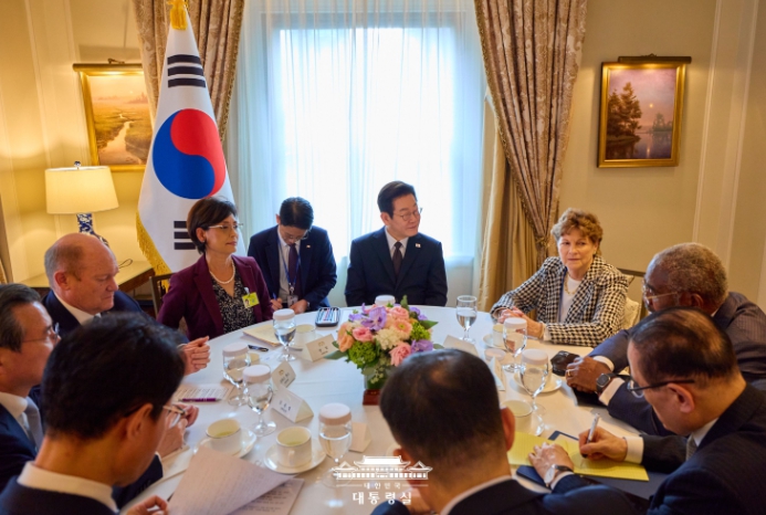 [코리아 이슈저널=최성일 기자] 유엔총회 참석 차 미국을 방문한 이재명 대통령이 22일(현지시간) 오후 뉴욕에서 미 상원 외교위 및 하원 외무위 소속 의원 4명을 접견하고, 한미동맹 강화, 한미 경제협력 확대 및 한반도 문제 등에 대해 의견을 교환했다.