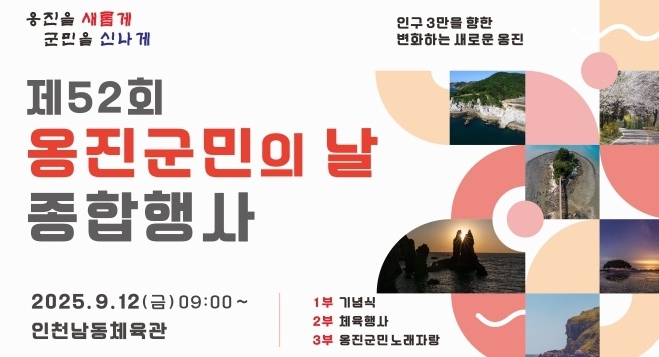 올해로 52회를 맞는 이번 행사는 도서지역의 특수한 여건상 평소 왕래가 어려운 군민 상호간 화합과 친목도모를 위해 준비해 왔으며, 애향심 고취와 전 군민이 일치단결해 ‘새로운 옹진, 신나는 옹진’으로 나아가는 계기가 될 전망이다.