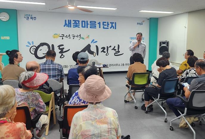 [코리아 이슈저널=홍춘표 기자] 파주시 금촌2동은 지난 26일 새꽃마을 1단지 주민공동시설에서 제162회 새꽃마을 이동시장실을 개최했다.