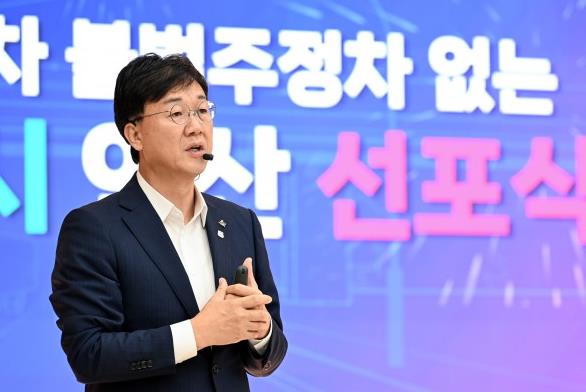 ▲ 이민근 안산시장이 지난해(9.27) '대형자동차 불법주정차 없는 청정도시 안산 선포식'에서 발언하고 있다.