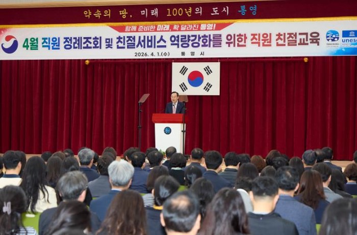 [코리아 이슈저널=김태훈 기자] 통영시는 지난 1일 시청 강당에서 4월 직원 정례조회를 열고, 주요 현안의 차질 없는 추진과 시민 안전, 민생 안정을 위한 행정 대응 방향을 공유했다.